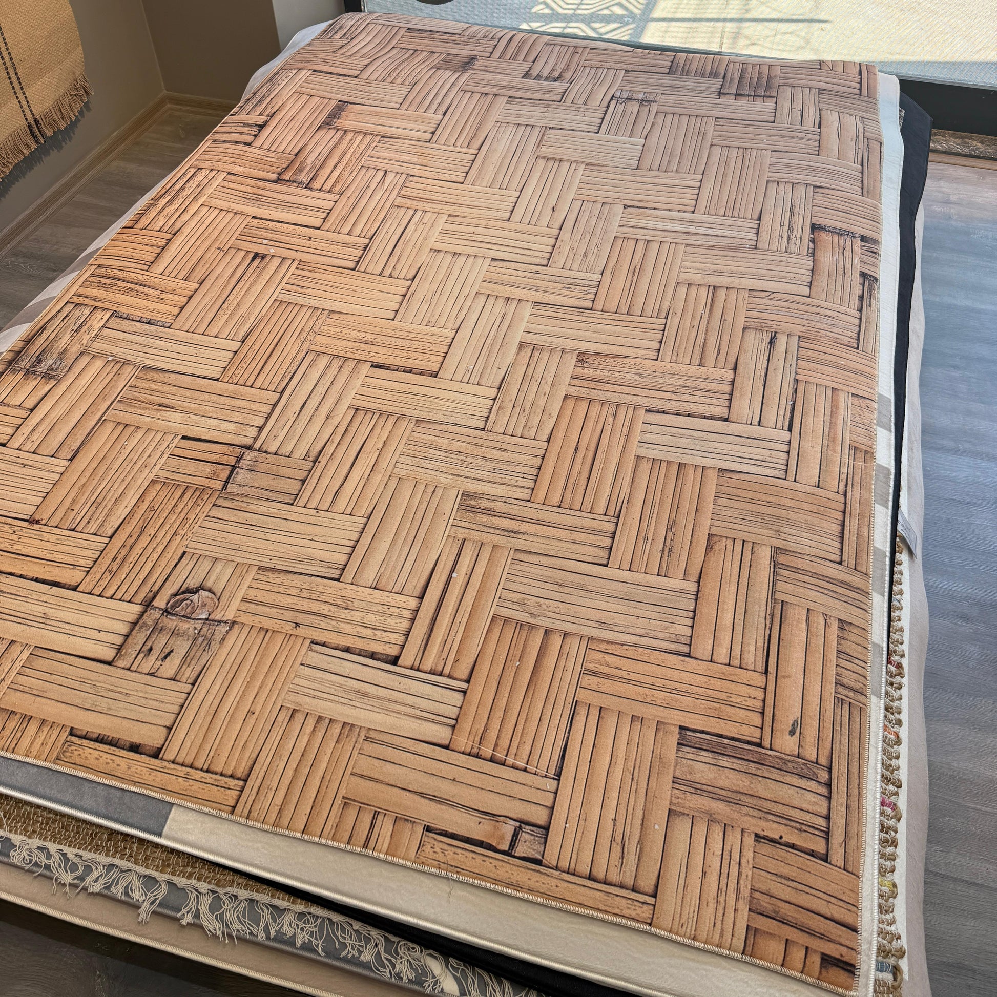 160x240cm - 11mm - Deri Taban Hasır Görünümlü Dijital Baskı Halı