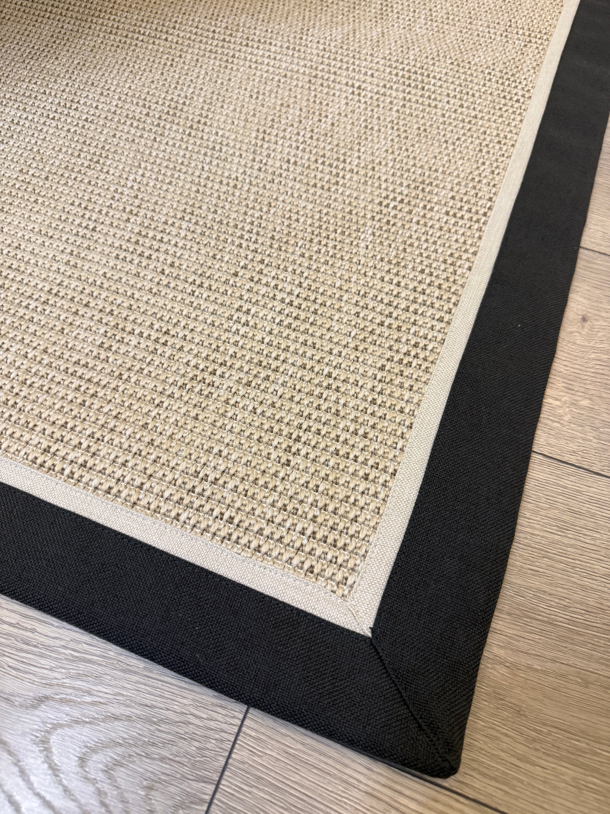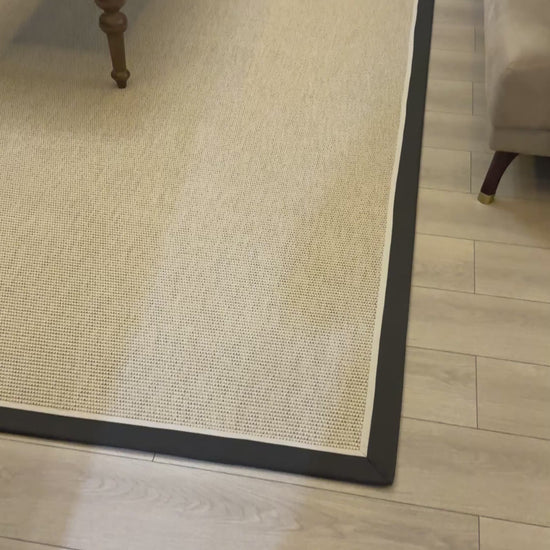 Antrasit Krem Çift Renk Kumaş Bordürlü 664 Krem Sisal Halı - El Yapımı, Dayanıklı, Modern Tasarım - HVHB21