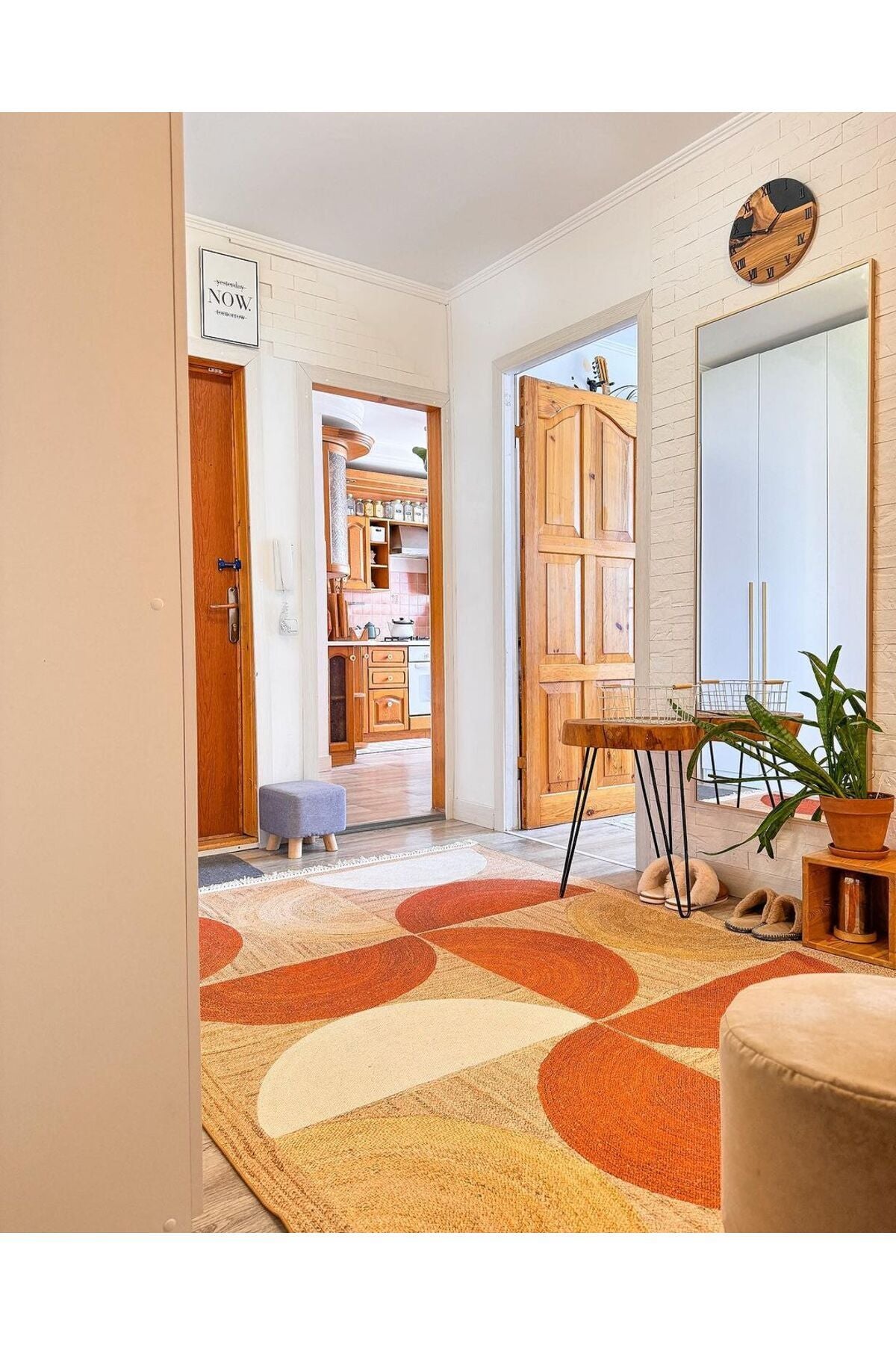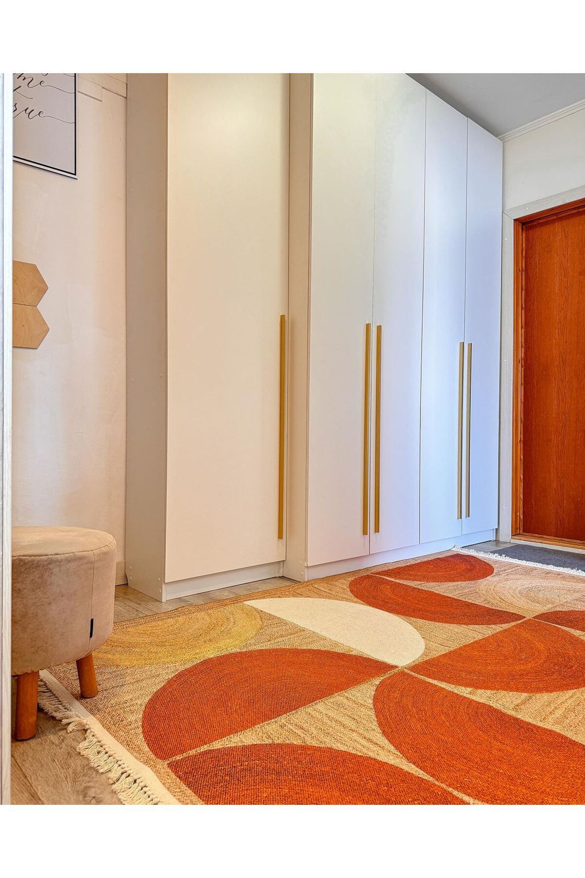 Cotton 3620 Jüt Kiremit Renginde Boho Stil Natural Pamuklu Dokuma Kilim