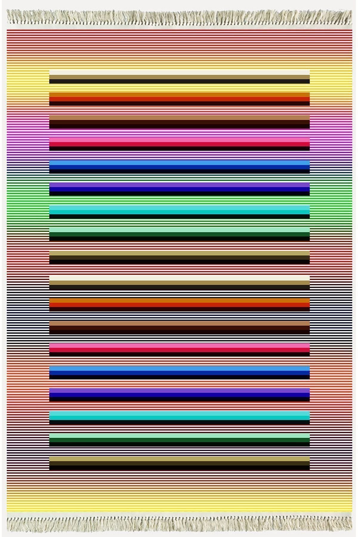 Cotton Kilim 55 Multy Geleneksel Motifler Modern Dekoratif Saçaklı Yıkanabilen Dokuma Kilim