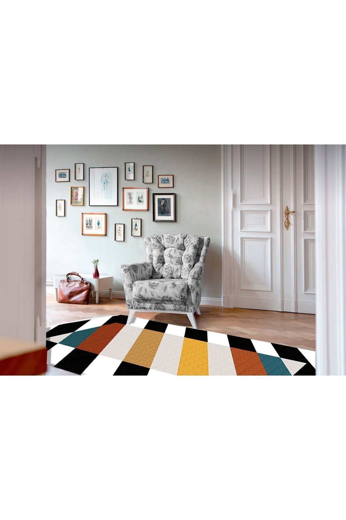 Cotton Serisi Siyah Beyaz Ve Multy Tonlarında Yatay Çizgili Dekoratif Dokuma Taban Kilim