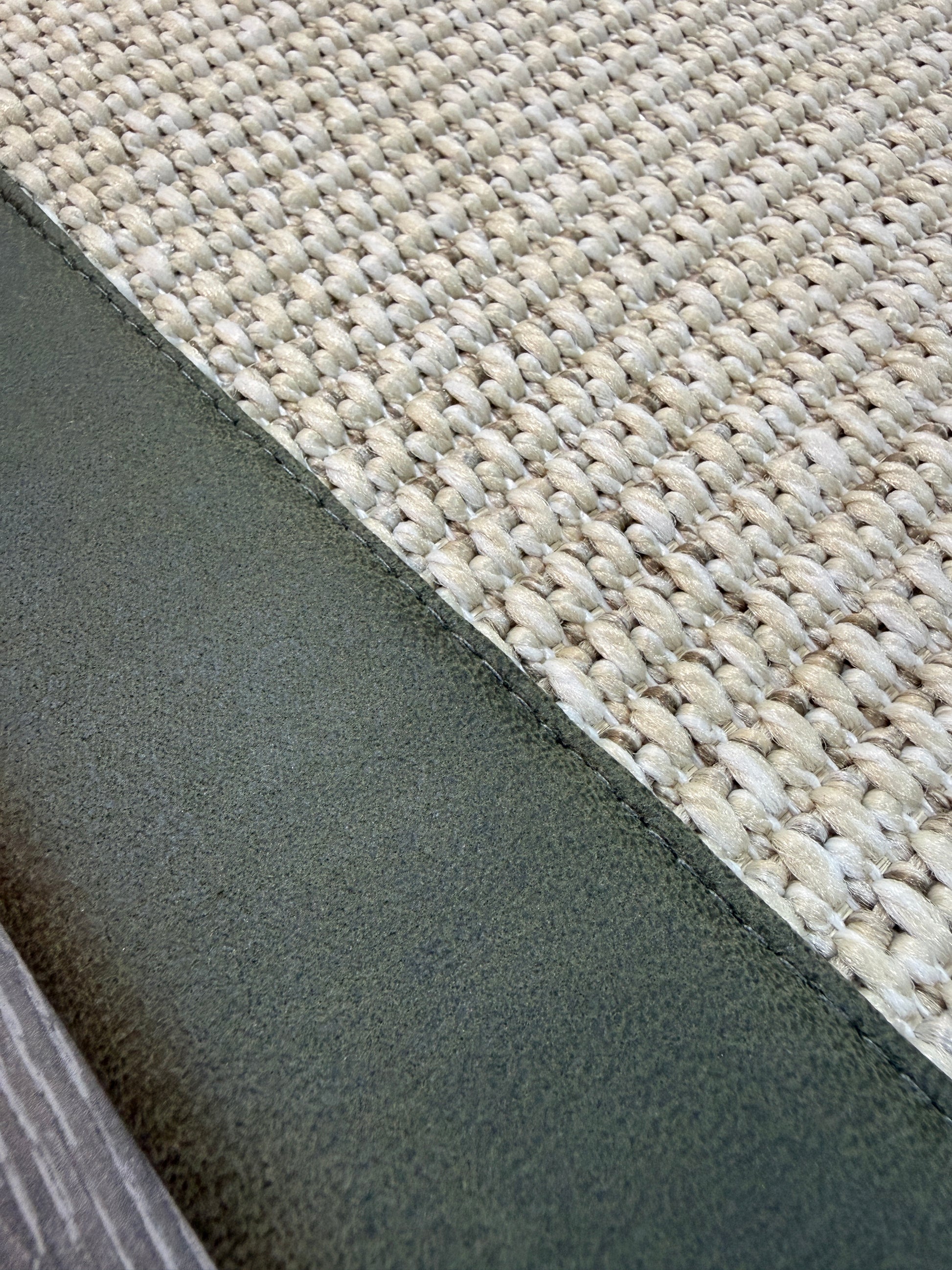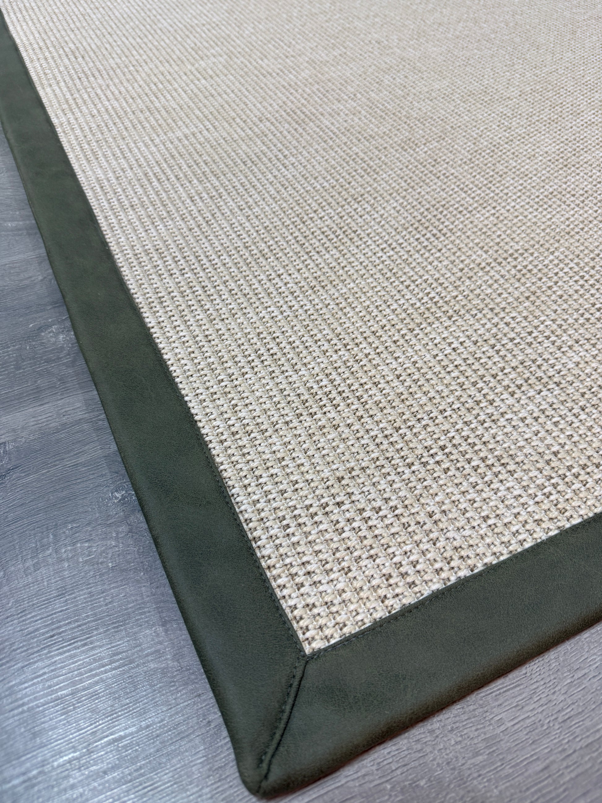 Evinize modern ve dayanıklı bir halı arıyorsanız, bu el yapımı deri bordürlü sisal halı tam size göre!
