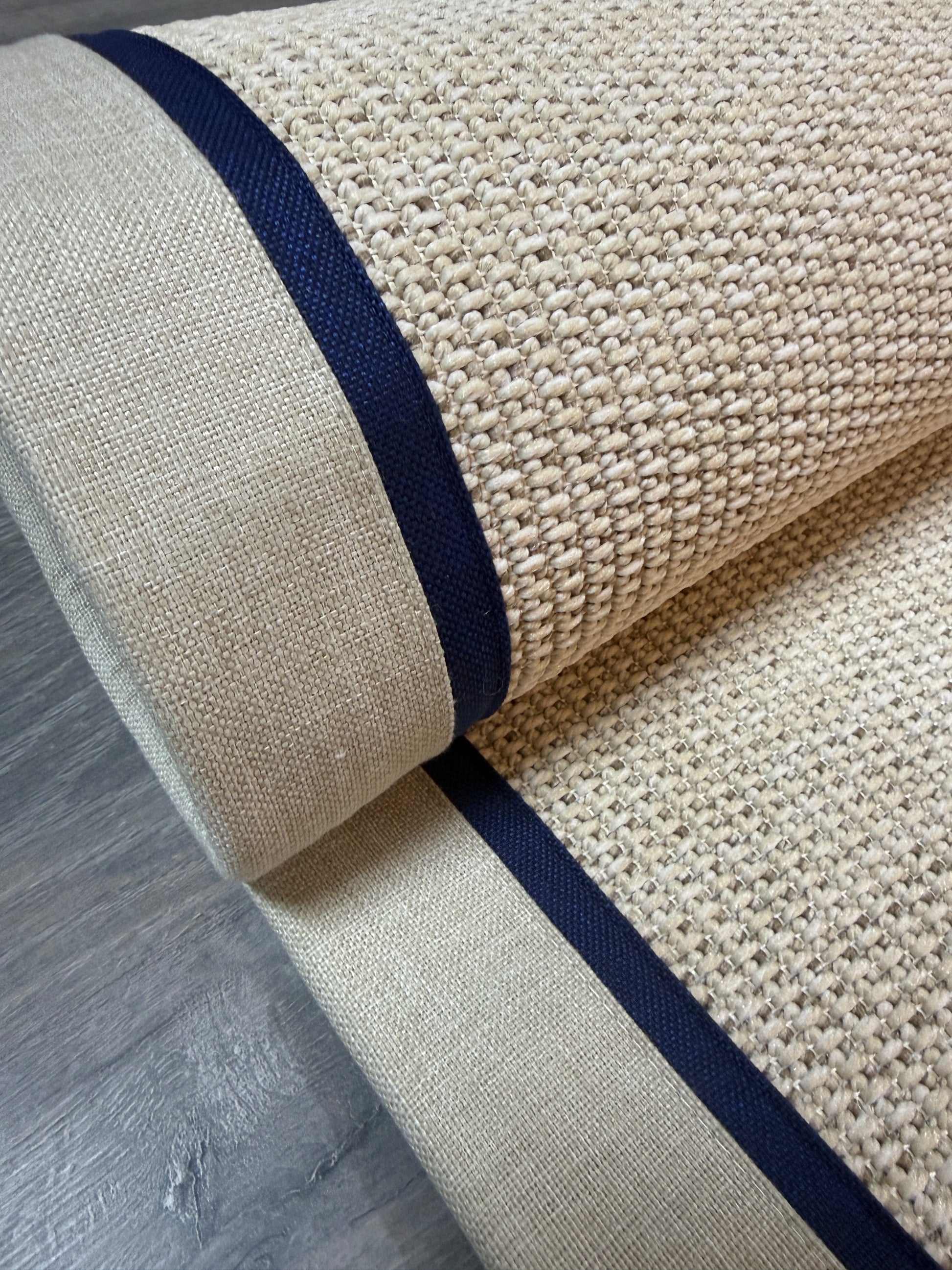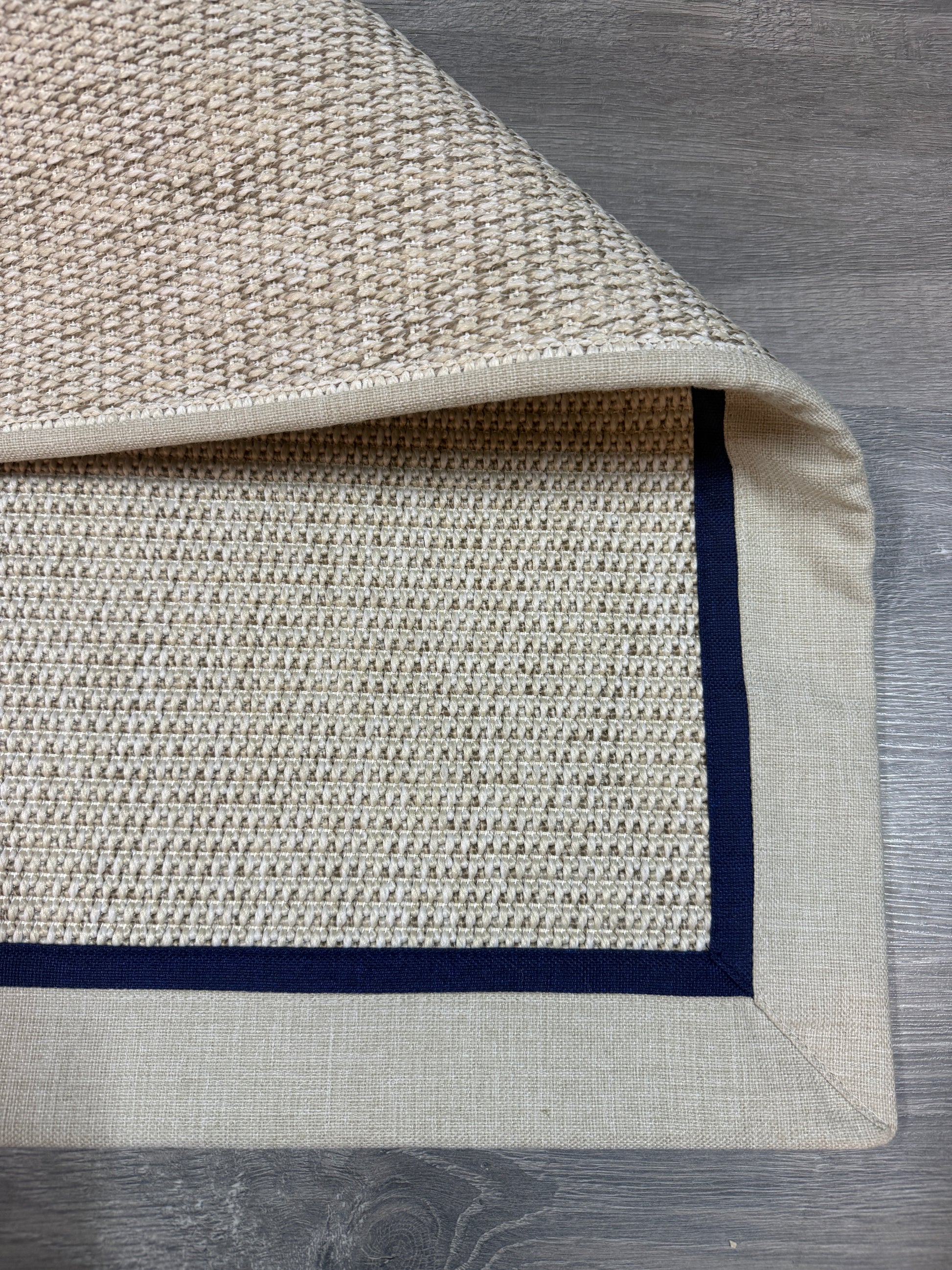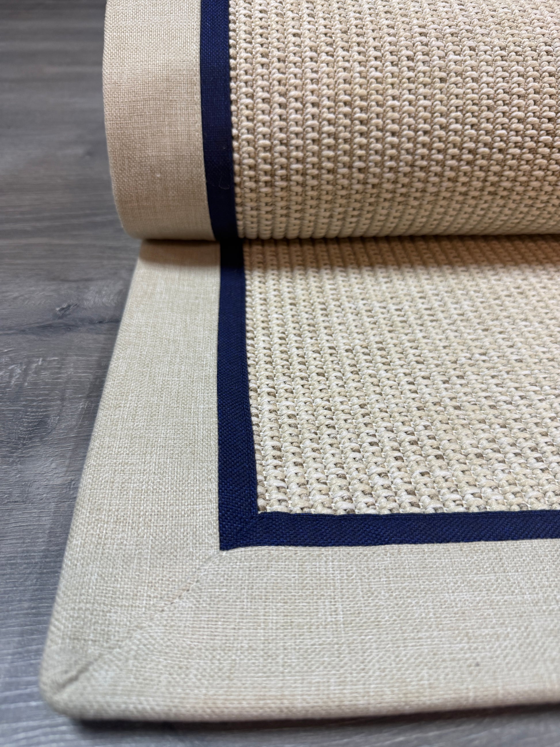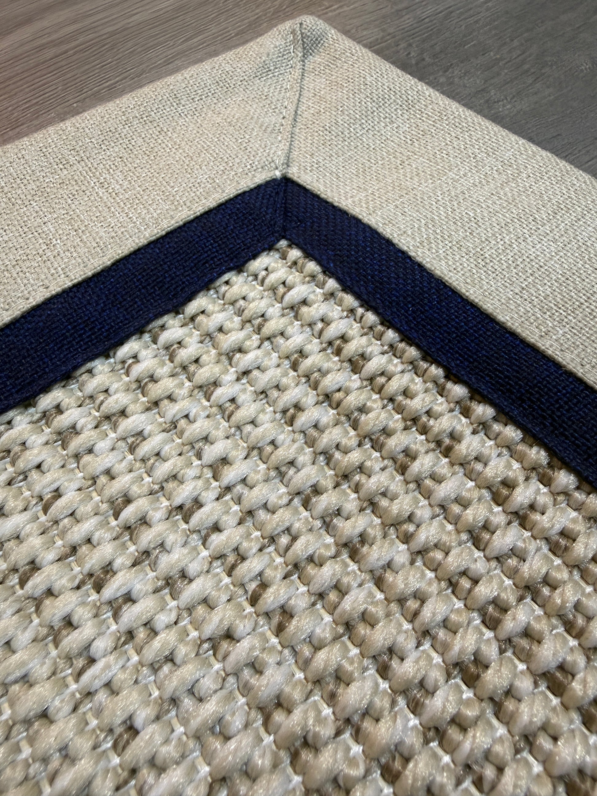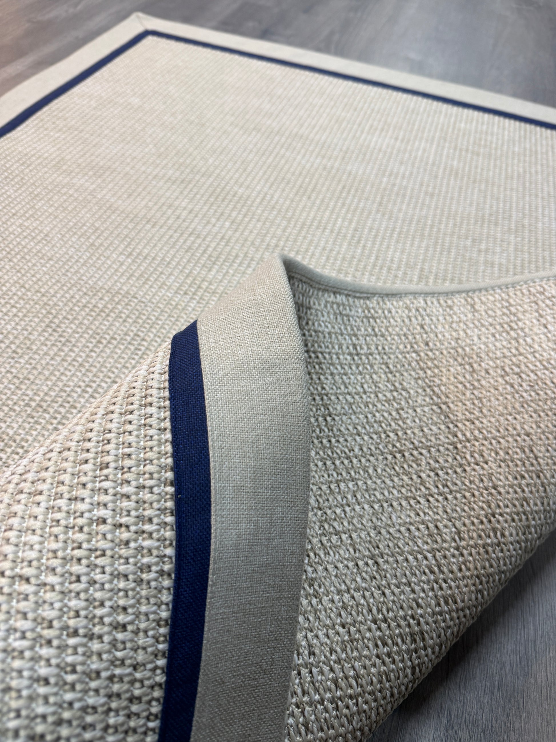 Himalaya Lacivert Bej Çift Renk Kumaş Bordürlü 664 Krem Sisal Halı - El Yapımı, Dayanıklı, Modern Tasarım - HVHB25